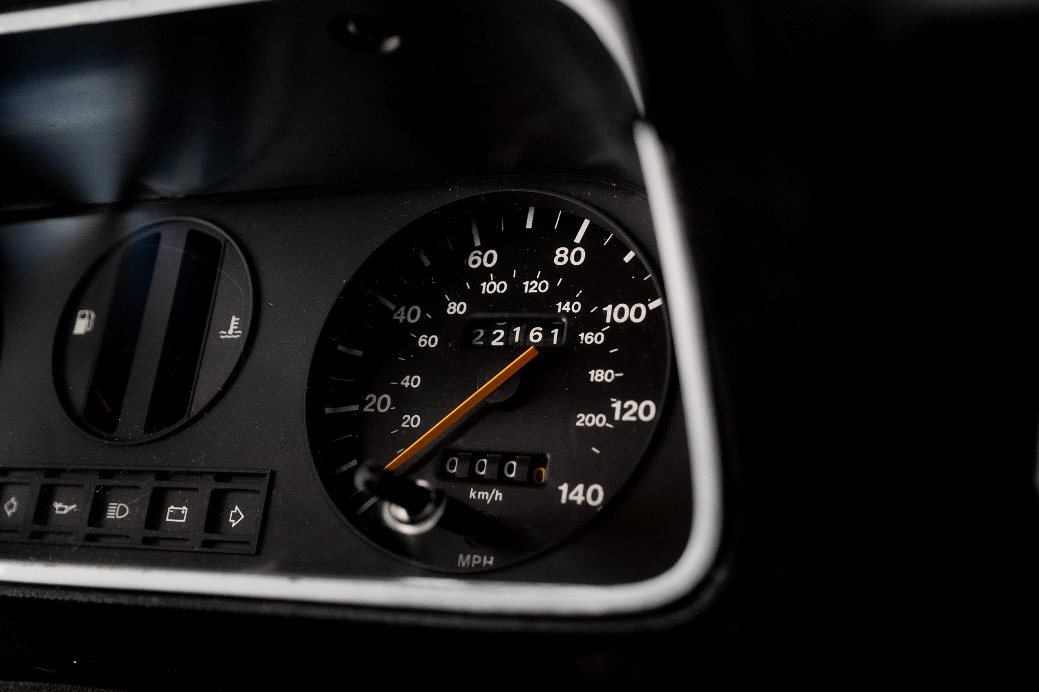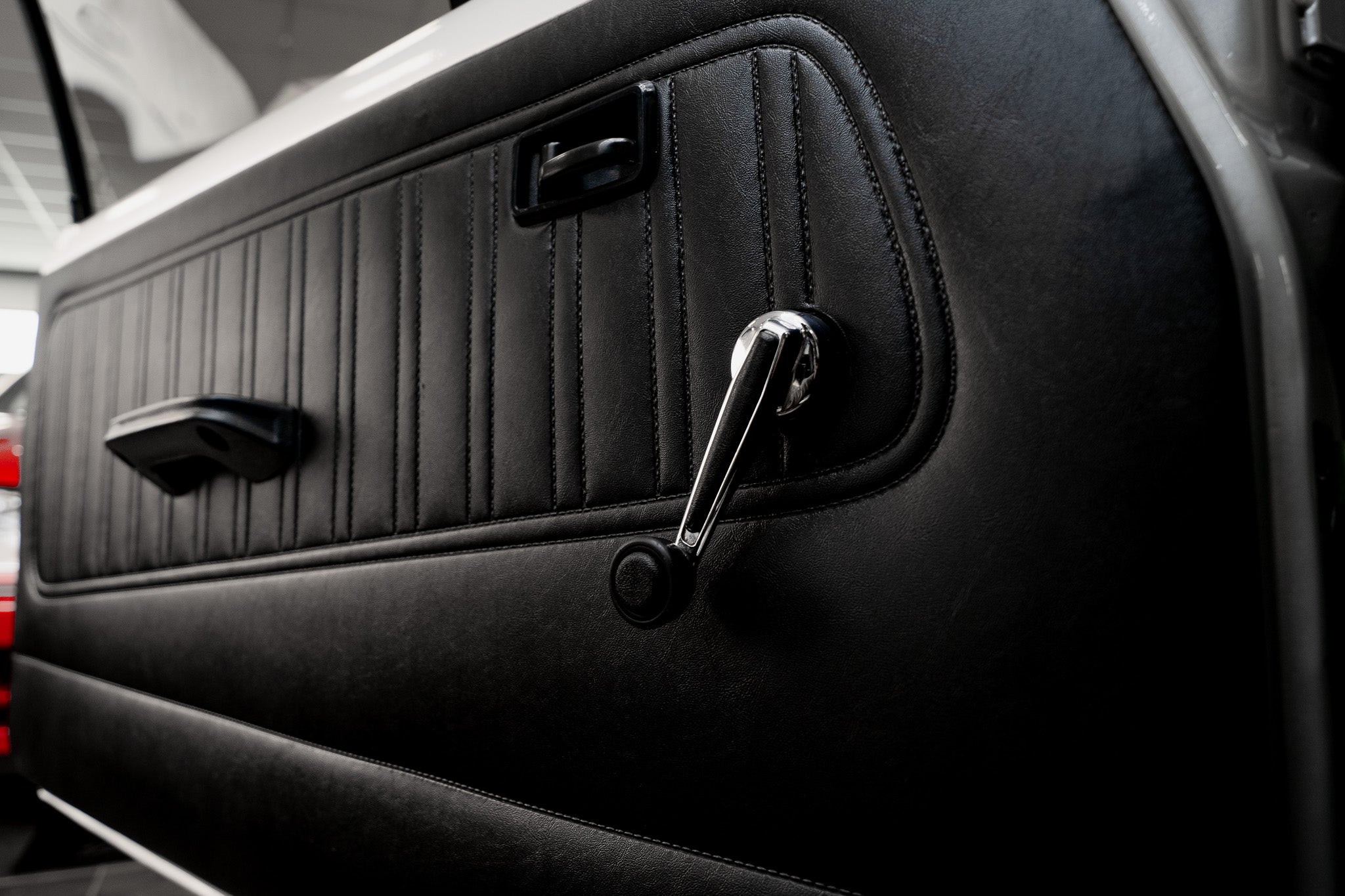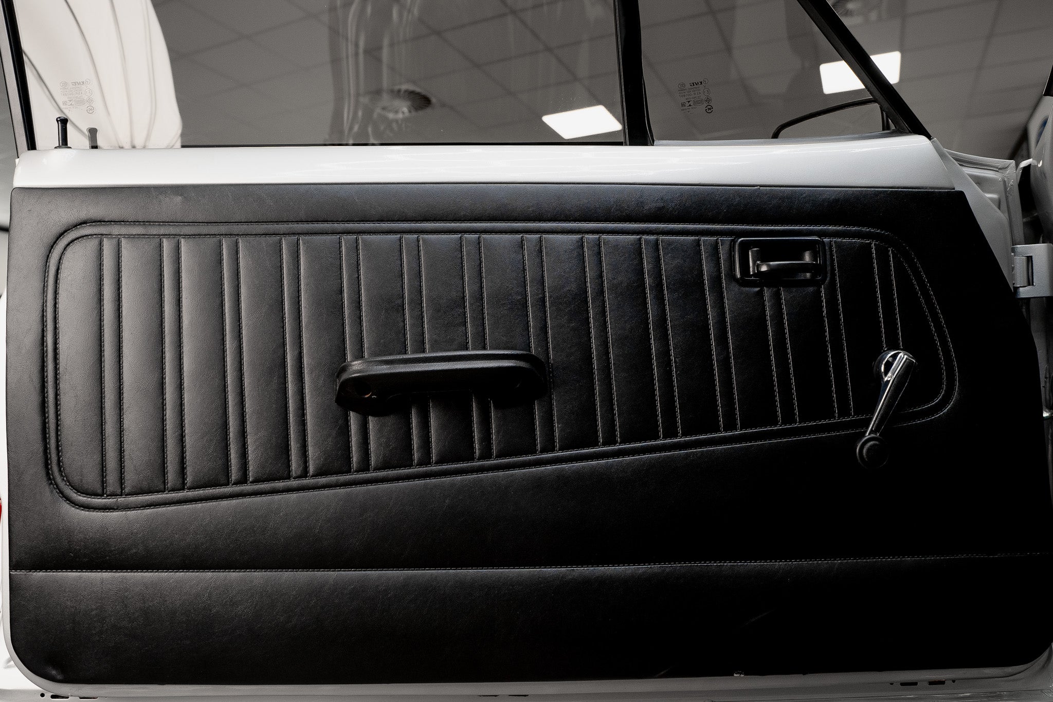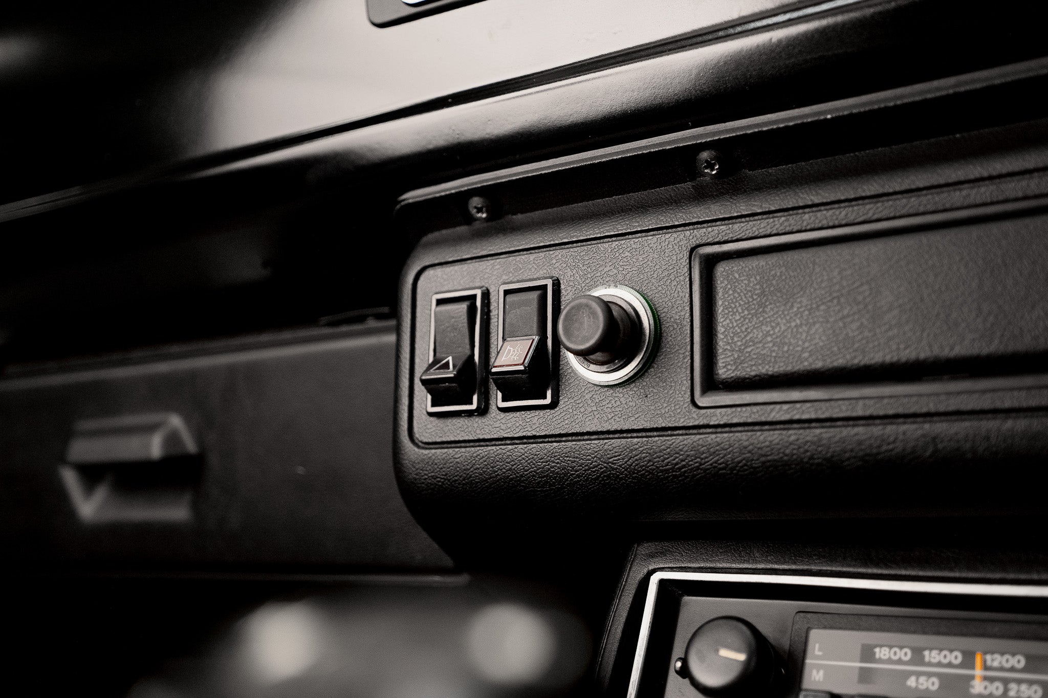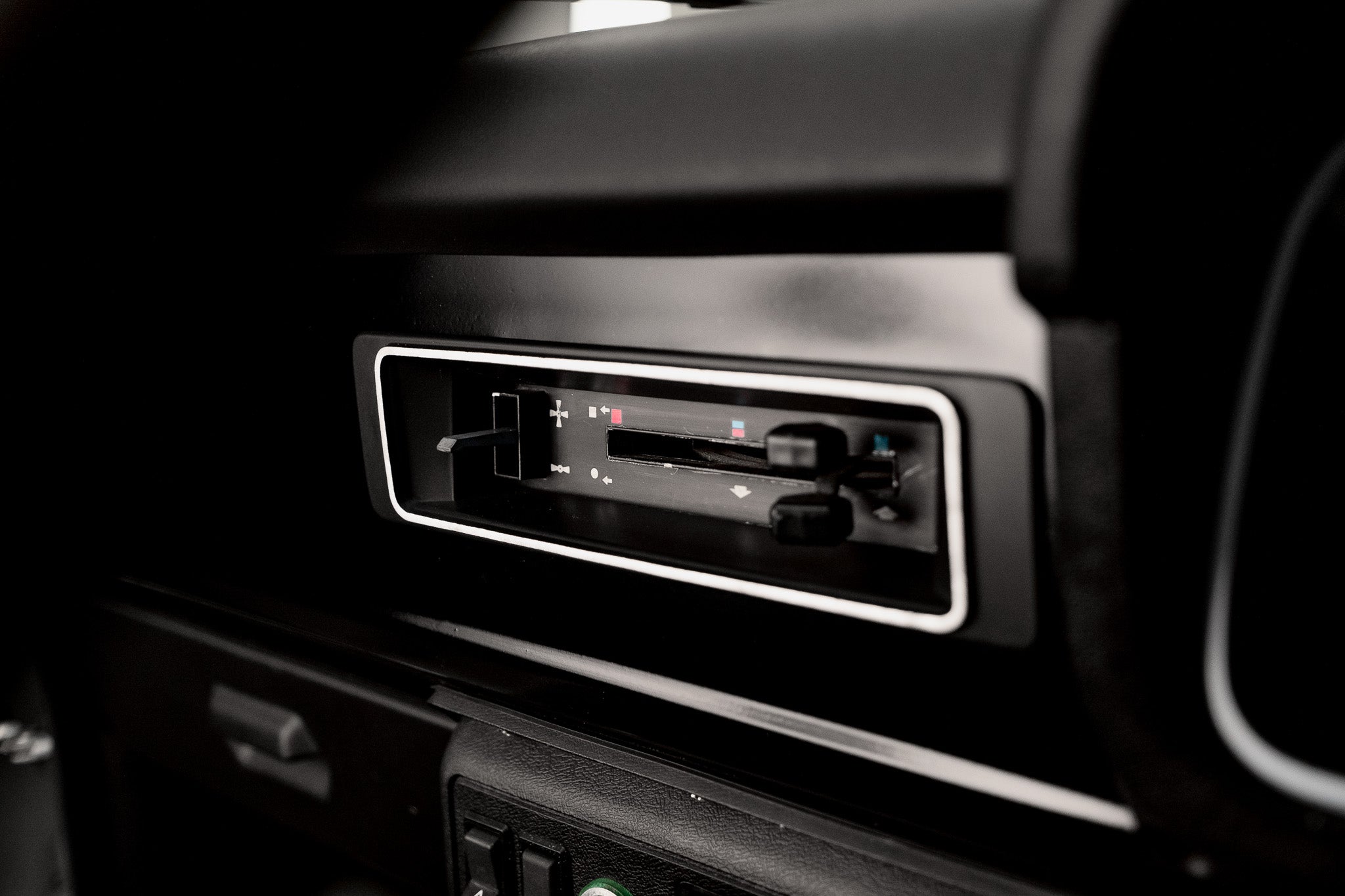 The black door cards front and rear remain tidy and free from damage, housing original door furniture including manual wind-down windows and the unmistakably period manually-adjustable driver’s door mirror control wonderfully simple and charmingly analogue. Underfoot, the black carpet is clean and well-preserved, helped greatly by the early fitment of protective over-mats