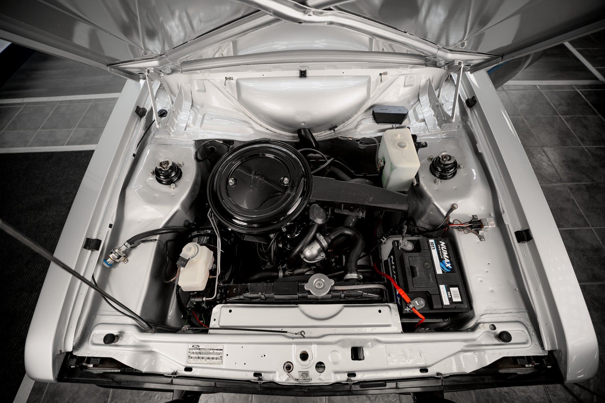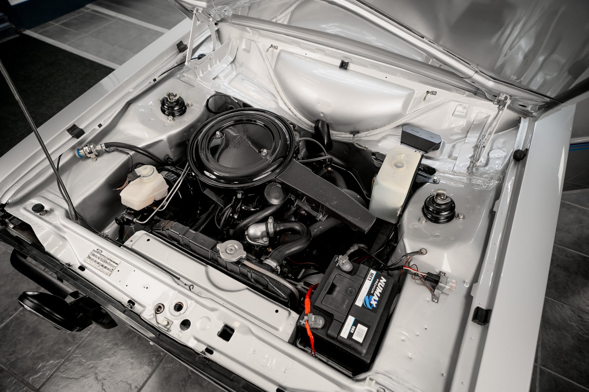 The engine bay remains beautifully presented with factory stamping, and genuine fittings still in situ. A wonderfully honest survivor.
