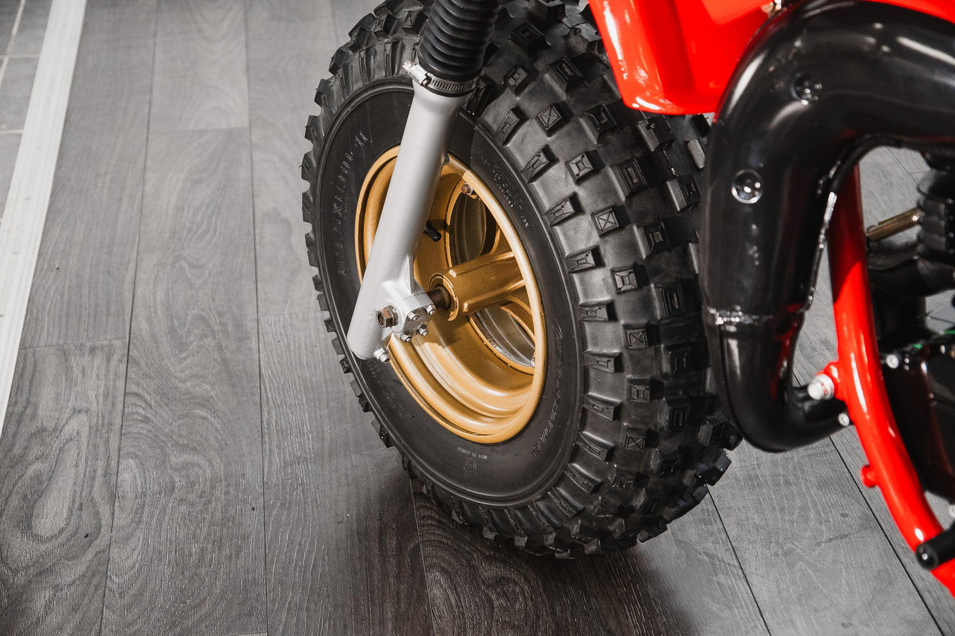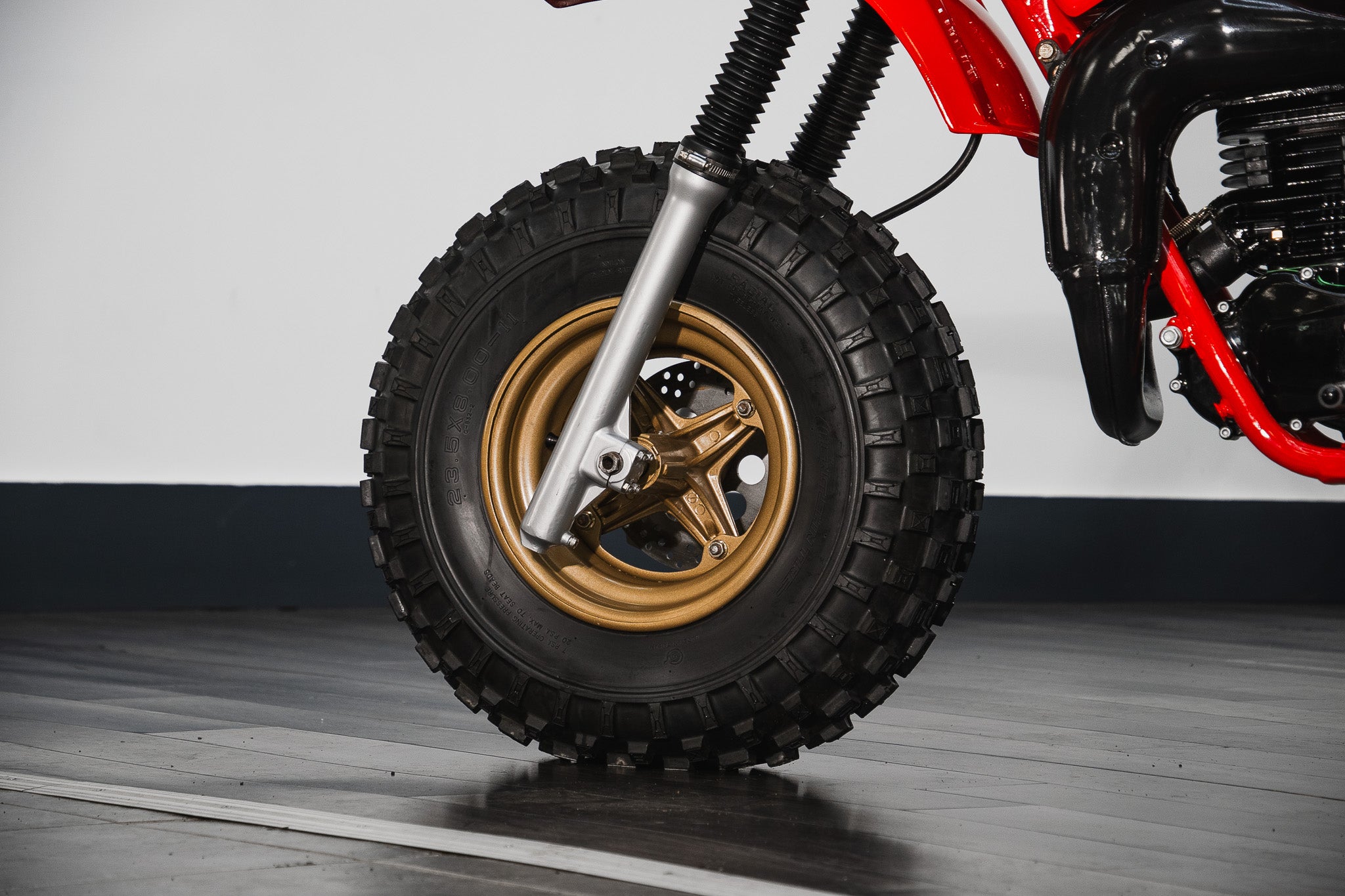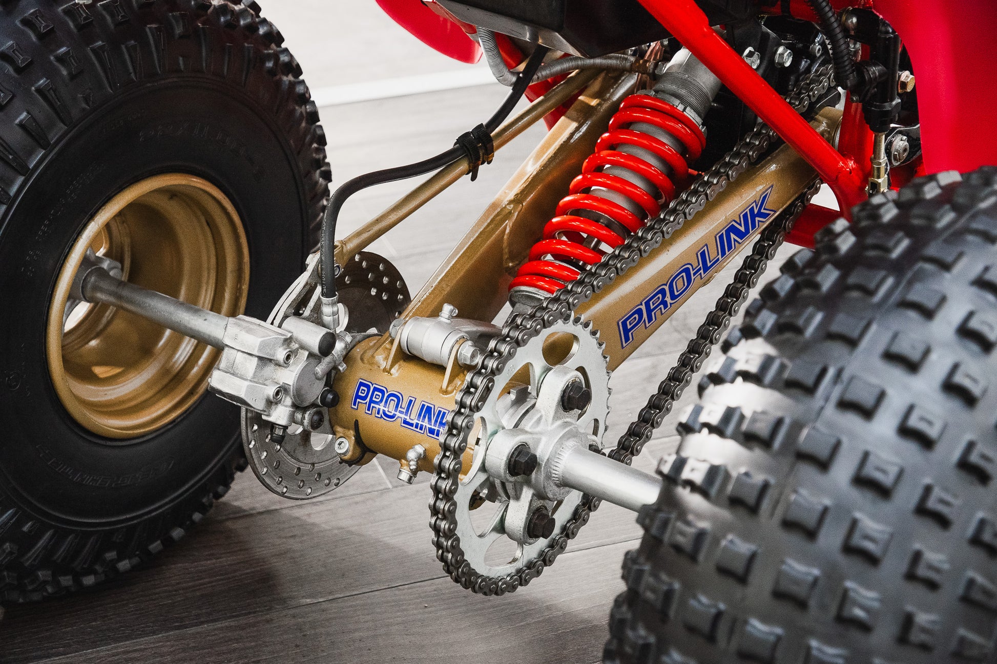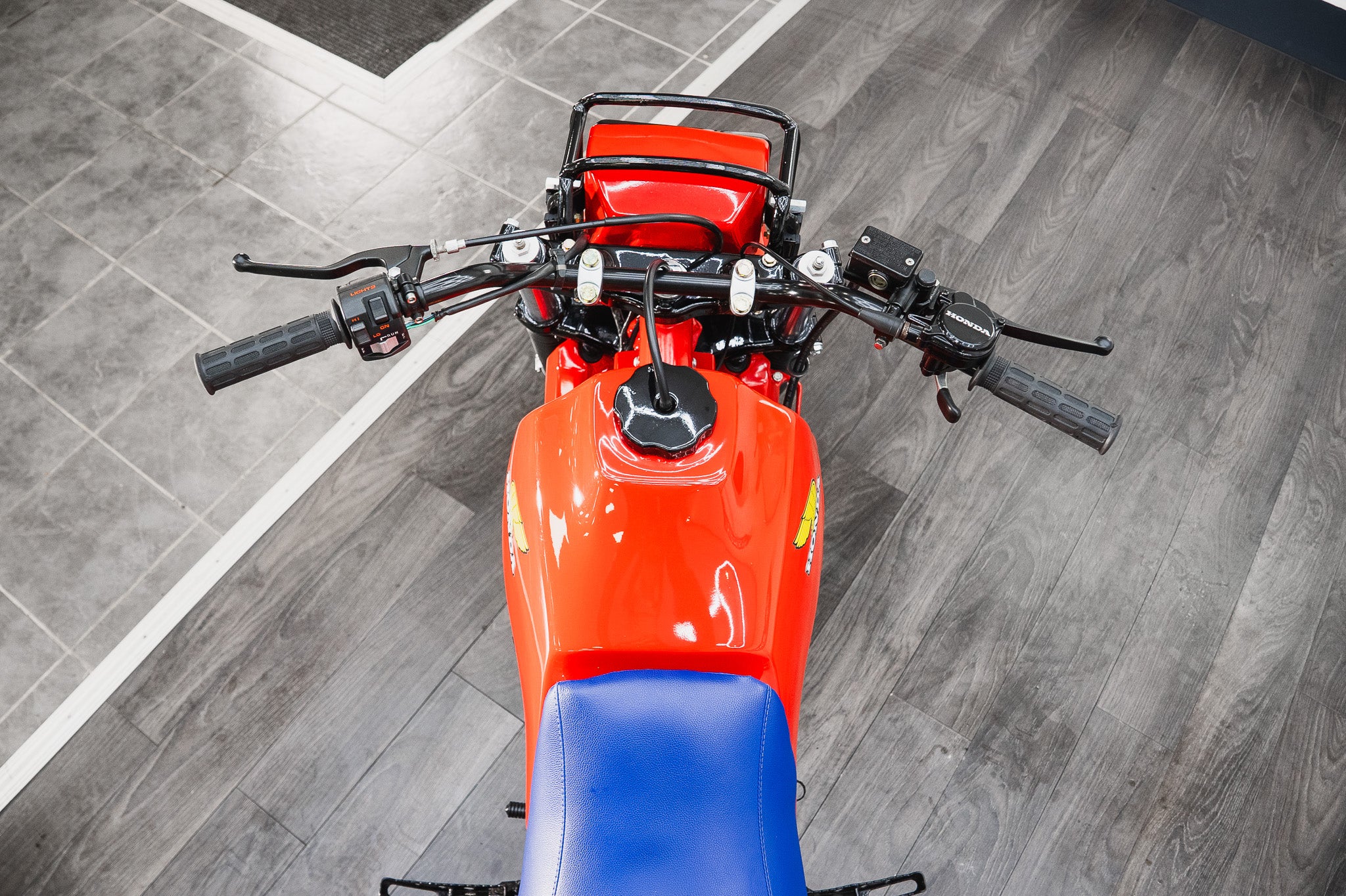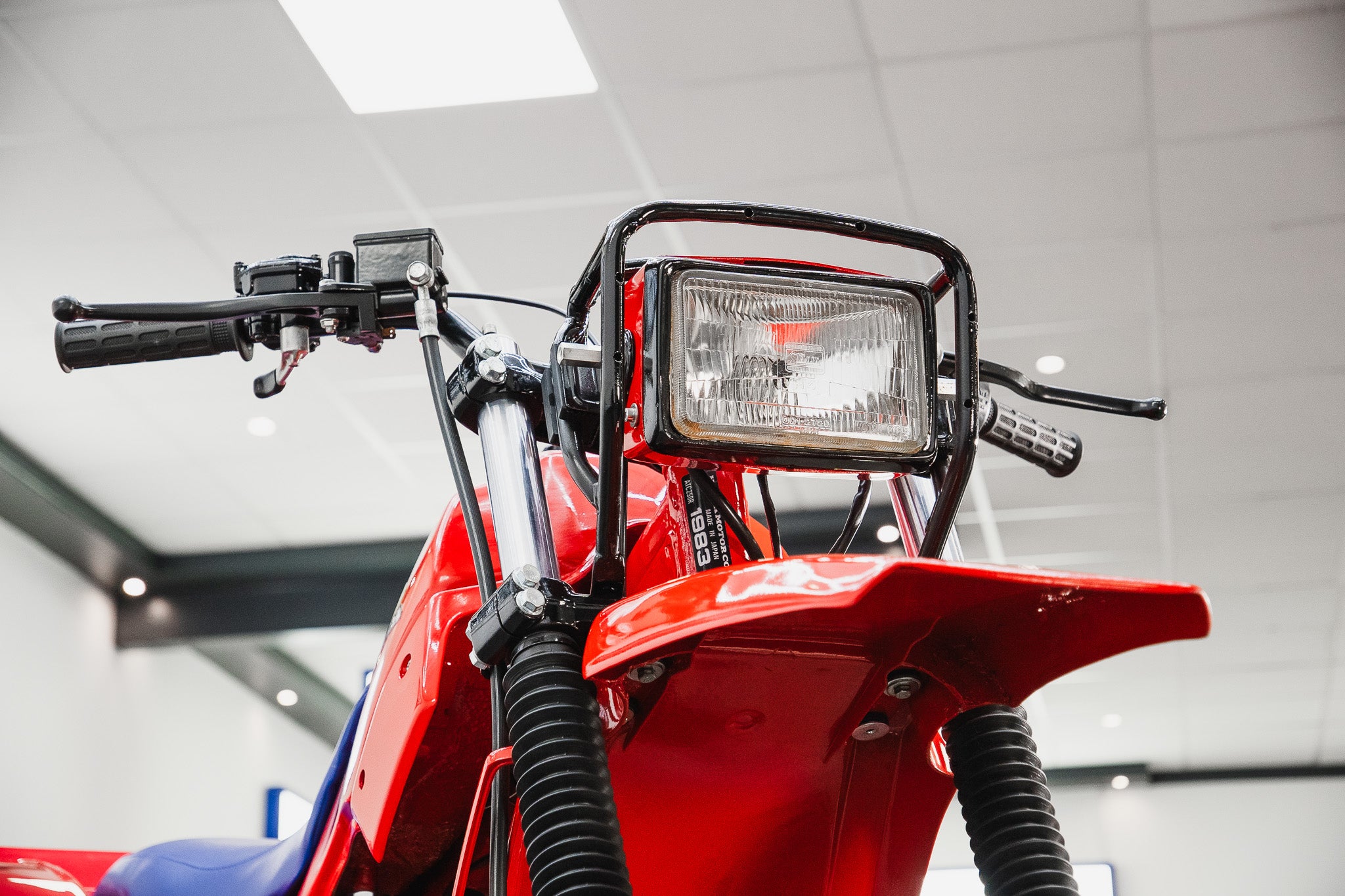 Finished in classic Honda Red, the machine presents with real presence and authenticity. The red plastic mudguards and fairings display a rich, even finish, highlighting the sharp, purposeful styling that made the ATC 250R instantly recognisable in its era.